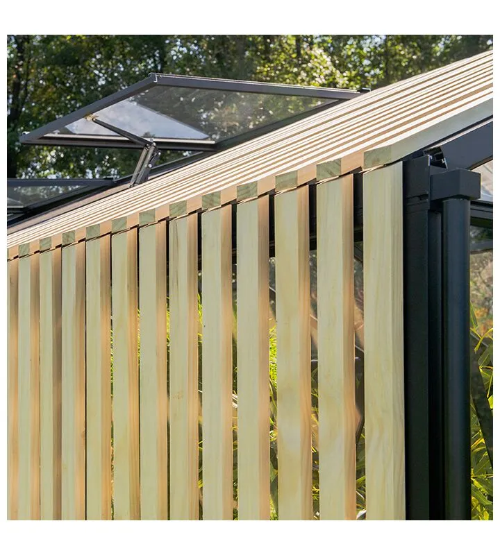 Ar prieku piedāvājam mūsu ekskluzīvo ierobežotas sērijas alumīnija siltumnīcu, īpaši veidotu tiem, kas vēlas eleganci un izturību savā dārzā. Šī siltumnīca ir papildināta ar augstvērtīgiem neapstrādātiem Accoya koka dekoratīvajiem elementiem, piedāvājot unikālu dabiskā skaistuma un izturīgu materiālu kombināciju.